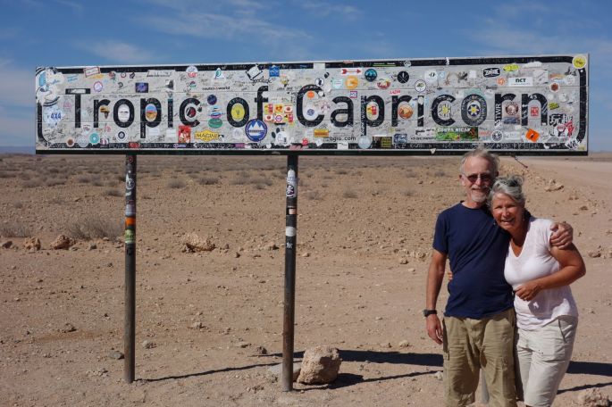 [Above photo: Standing at the Tropic of Capricorn in the Namib. ]