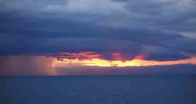 We have seen the most incredible sunsets here, as I’ve often commented. I’m not sure what the atmospherics are that enable them, but the colors and the cloud formations are the stuff of fantasy. We passed a rainstorm on the drive home and there was a striking rainbow. In the 15 seconds it took me to find and ready my camera for a shot, it vanished. I recall concerts at the Filmore in the ‘60’s when they’d pour different colored oils on a glass plate, or between two glass plates, and project it onto a screen. That plus the music plus some herbal encouragement and it was pretty outrageous. With no electronics and no music and certainly no intoxicants, sunsets here are even more breathtaking!